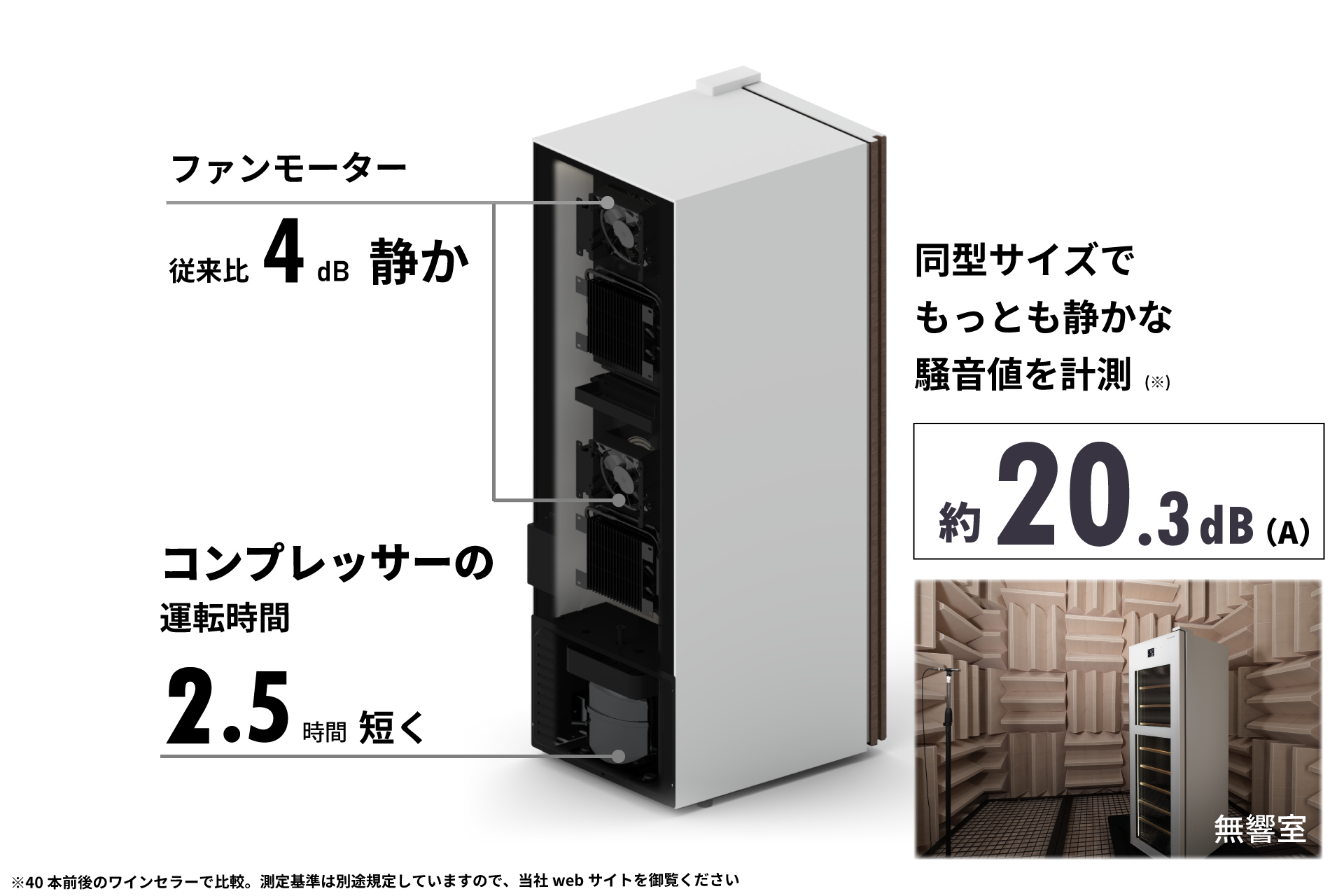 氷温ゾーンでは生酒を安定して保管できるほか、意図的な温度変化をつけてワインの熟成をコントロールすることも可能。これはプロ仕様のワインセラーでも搭載されていない冷却技術(※2)です。外気に左右されず、理想的な温度環境を追求した一台です。