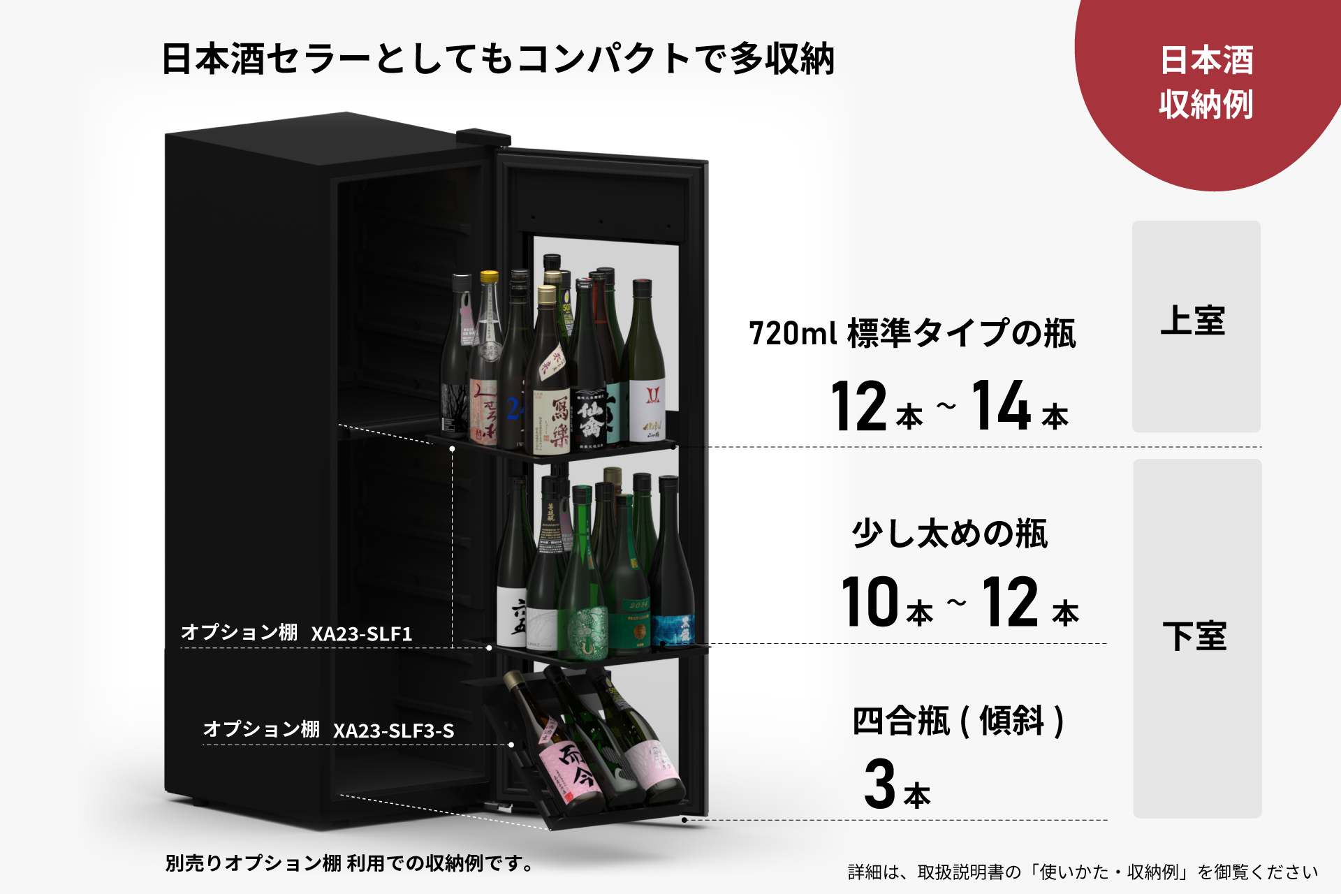 | 収納本数(一升瓶) | 11本(上室6本 下室5本) | |