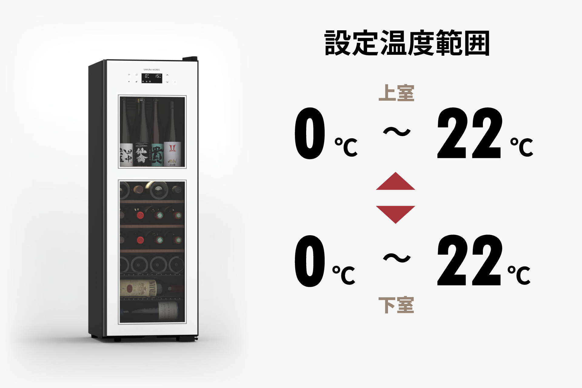| 収納本数(ワイン) | 38本(上室16本 下室22本) | |