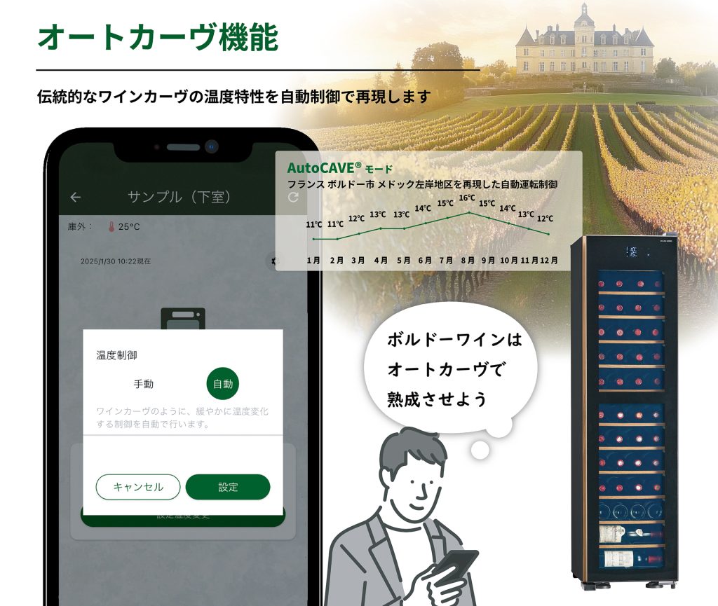 ワインセラーの技術が「液体温度を0.1℃単位で安定させる」ところまで進化したからこそ、その技術を応用し、逆に「意図的に緩やかな温度変化」をつけることも可能になりました。