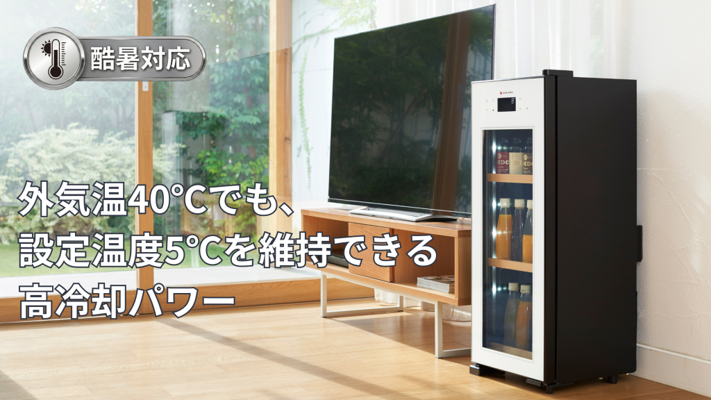近年、外気温が40℃に迫ることも珍しくありません。一般的に冷却力の弱い「ペルチェ式」のセラーでは、外気温に負けて庫内温度が下がらないことがあります。また、冷却パワーに優れるコンプレッサー式でも、冷気循環が弱い構造の場合、温度ムラが発生することもあります。