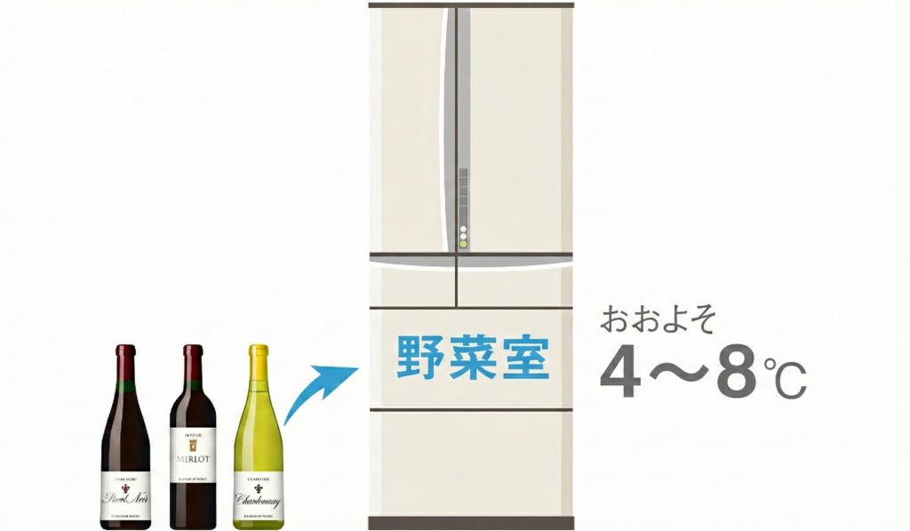 「数日以内(長くても1~2週間程度)に飲む」という前提であれば、冷蔵庫の野菜室が、家庭内では比較的適した一時保管場所となります。