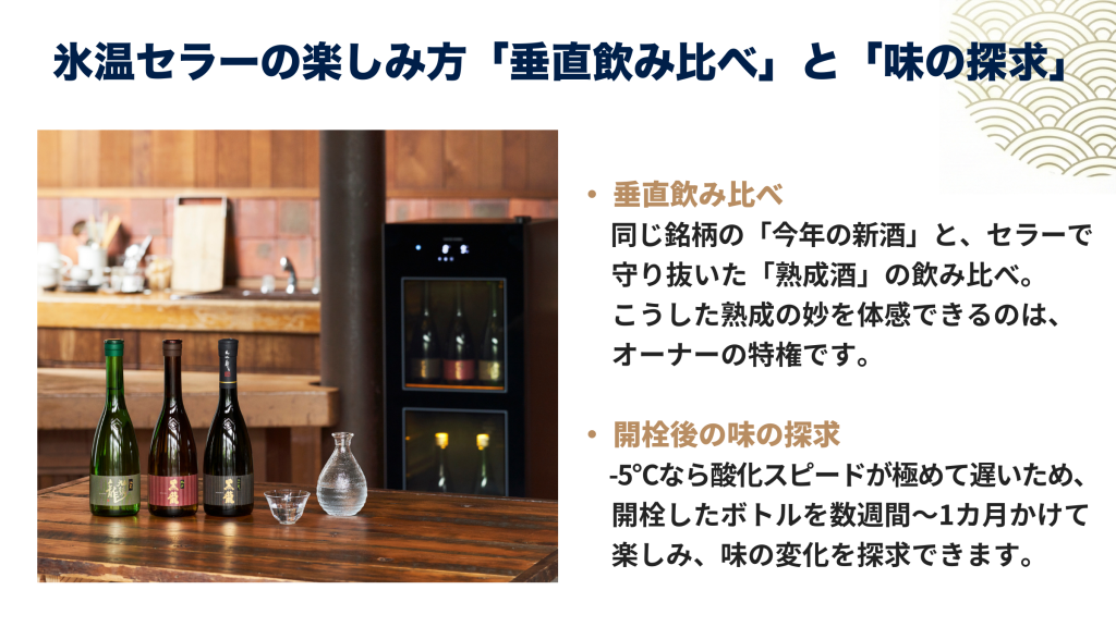 これは温度を自在に操れるセラー所有者だけが踏み込める、日本酒の新しい趣味の領域です。